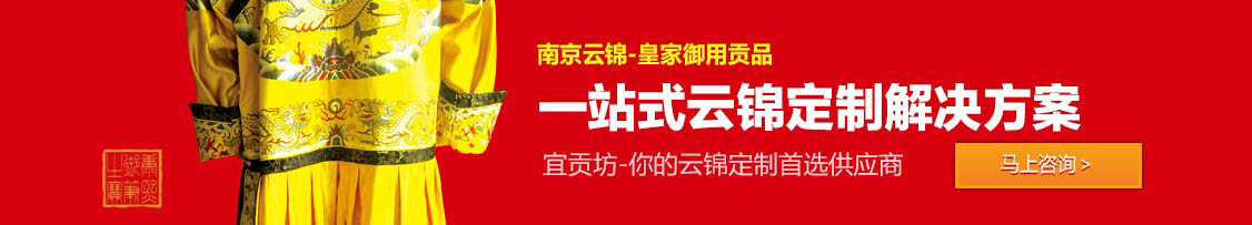 南京宜貢坊云錦文化科技有限公司成立于二OO一年,場(chǎng)地面積10000㎡,致力于做中國知名的云錦,宜貢坊云錦文化科技有限公司座落于江寧開發(fā)區(qū)。做為江蘇云錦文化科技品牌之一,南京宜貢坊擁有雄厚的技術(shù)力量和實(shí)力,現(xiàn)有大型傳統(tǒng)花木樓織機(jī)幾十臺(tái),織造師、研究設(shè)計(jì)人員數(shù)百人。公司擁有直屬北京、深圳、上海辦事處和近千家緊密經(jīng)銷商、合作商;產(chǎn)品在南京中央商場(chǎng)、新百、上海八百伴、上海友誼商場(chǎng),泰州金鷹等全國多家大型商場(chǎng)均有專柜。